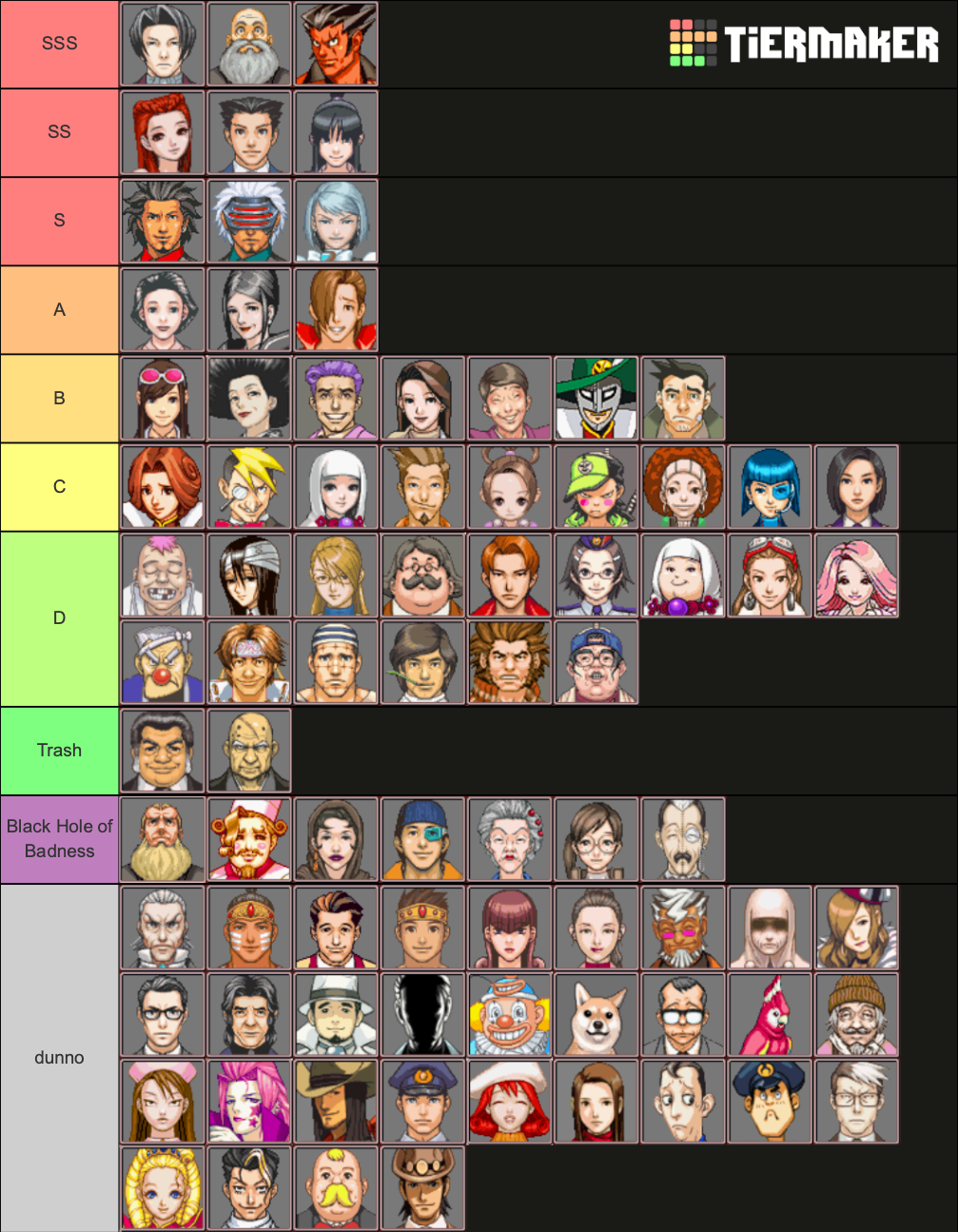 You use our tier list maker to quickly create your own unique and interactive template that anyone can use. Posted by 1 year ago. Click to see spoiler. This thread is archived. Ace attorney tier list villains. Still he is at least responsible for the greatness that is the steel samurai so i can give him credit for that and i do appreciate that hes essentially the first decoy villain in the series.