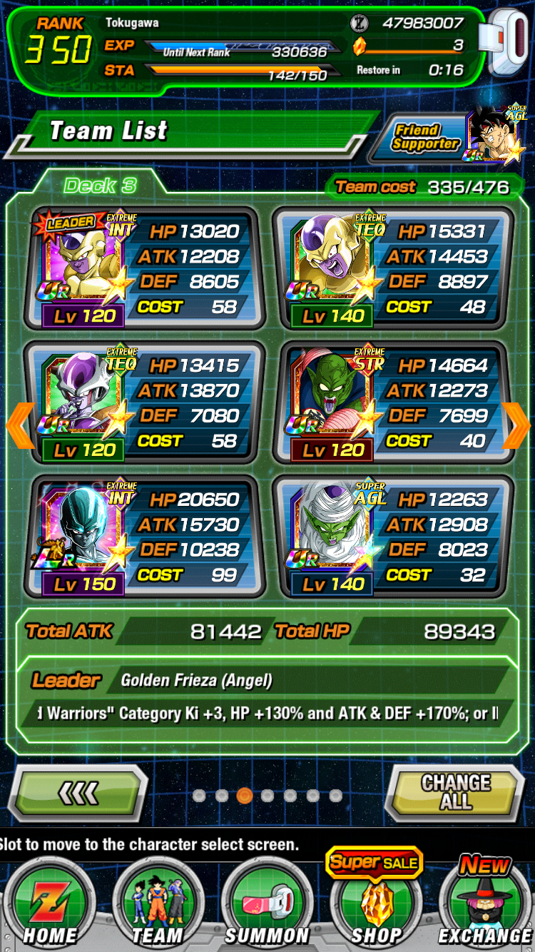 Card reasoning s1 emperors true splendor golden frieza angel great hard hitting unit that can tank decently decent debuffer for the team no big bad bosses debuffs super class allies s2 indomitable fighting spirit super saiyan 2 vegeta great all round unit that can hit really hard and tank even at start of battle good linkset good stunner transformation is easy to achieve. Find all the dragon ball z dokkan battle game information more at dbz space.