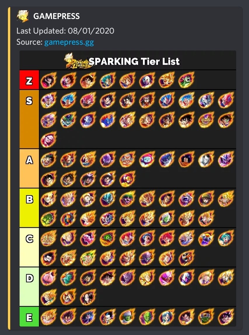 Dragon ball legends sparking tier list. Click savedownload and add a title and description. Edit the label text in each row. Dragon ball legends pvp guide. Tier 2 is a good spot for him. If his z ability was better hed still be a main unit in sf but the lack of double z ability buffs means that bringing gt goku red is the better choice. Qa upgrade to forum.