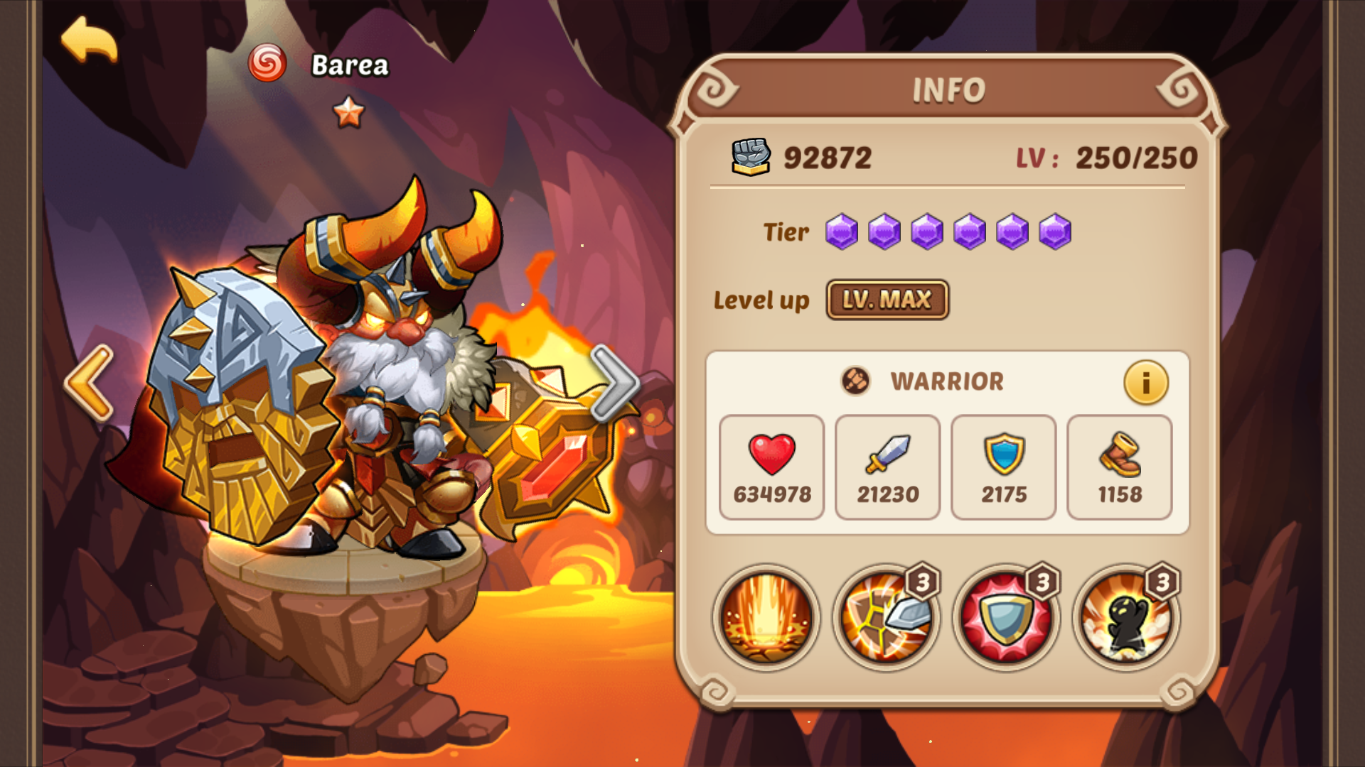Five star barea has a power of 7033 a life of 28514 an attack of 2807 an armor of 758 and a speed of 609. If you want to help discuss or just talk about idle heroes this discord link will bring you to a community of like minded players. Guys on this site youll find all the best tier lists in one place plus in depth information for each of the heroes. The heroes of the abyss in idle heroes are not at all as strong and interesting as those of other factions but if we had to choose two these would be barea and norma. Suppression attack active front line enemies take 200 of attack damage and take 20 of targets total health damage the damage wont exceed the 1500 of hero power.