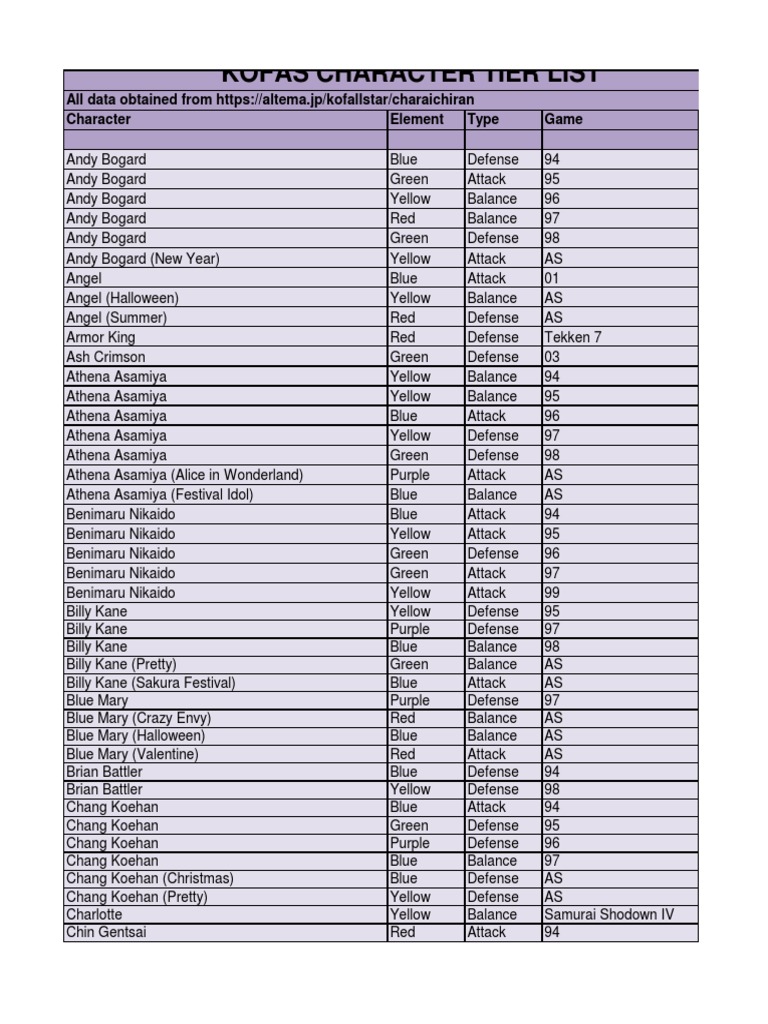 Kof allstar x tekken tier list. Story mode how well in does in story content and helping you out. Everybody got his own explanation about tier list. There are more hidden 5 you can unlock through the shop or completing main chapters. Increases atk by 4. Increases critical rate by 4 when hp is 50 or more. This is a general tier list for the japanese version of the game but it also applies to the global version i think.